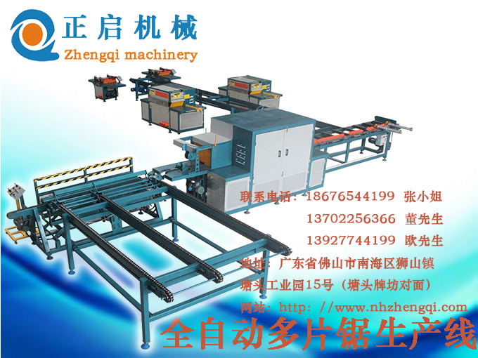 原木多片鋸鋸切是木材切削加工中應用歷史最久,最廣泛的加工方式.鋸切主要用來把木材剖分或截斷成兩部分。鋸的種類很多絕大多數的鋸都是由鋸身及在邊緣上做出的鋸齒所組成.鋸基本為圓盤形和條(帶),形兩大類.用厚度和寬度,長度或直徑表示其尺寸參數.鋸切時,直接切削木材的部分是鋸齒。鋸齒按其切削木材時相對于木材纖維方向的不同,主要分為縱剖齒和橫截齒.鋸齒根據刃磨方式的不同分為直磨齒和斜磨齒.縱剖齒多數直磨,橫截齒基本為斜磨。
