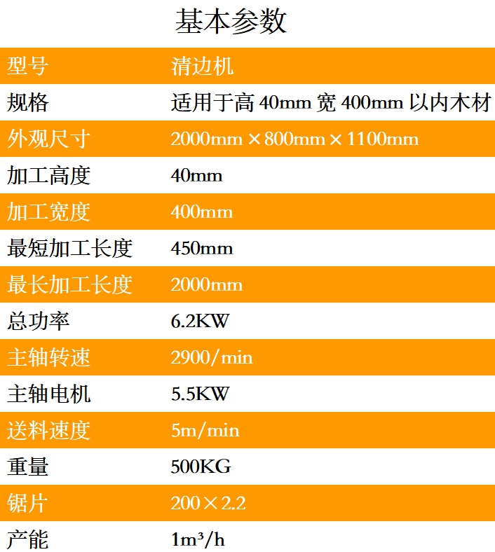 清邊機用于對自然寬木板進行修邊、規(guī)格分片、對邊修切、中分、多片成規(guī)格分片。鋸面光滑,無需再刨,規(guī)格多、送料平穩(wěn)、修切精度高、安全、效率高、故障率低,是配合原木多片鋸使用的最佳設備。