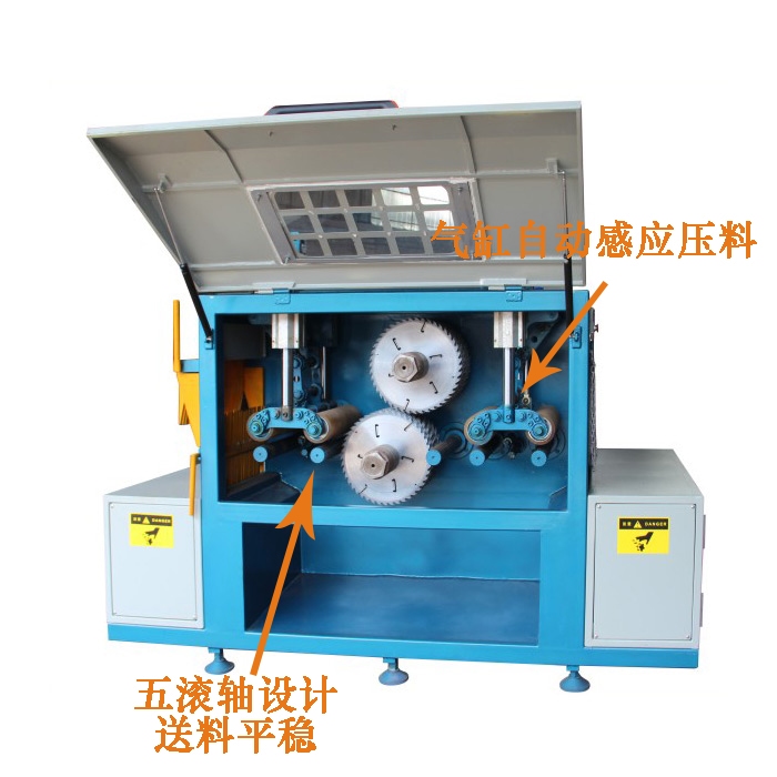 5.采用上下軸鋸設(shè)計,具有鋸片直徑小,鋸路小省料的優(yōu)點。上下鋸設(shè)計的鋸片鋸路是正常單軸鋸片鋸路的50%。加工同樣高度的木料其鋸路僅為普通單據(jù)軸的1/2。鋸切面光滑平整可以代替刨。節(jié)能降耗一次多片加工。送料速度高,大大提高加工效率,上料快,操作簡單,維護(hù)保養(yǎng)簡單,上下輥主氣缸壓力,送料平穩(wěn),增加鋸片的使用壽命。