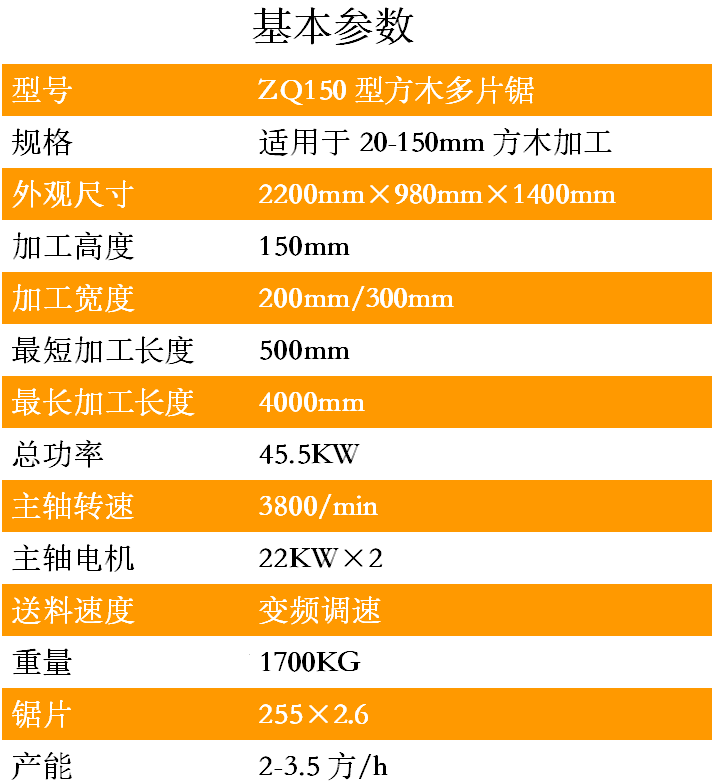 1.ZQ150型方木多片鋸采用獨立5條滾軸傳動設(shè)計,可以保證同一個平面線上,送料平穩(wěn)。